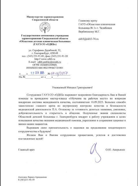 Государственное автономное учреждение здравоохранения «Областная клиническая больница №3» внедряет систему управления качеством с 2022 года в рамках добровольной сертификации медицинских организаций «Качество и безопасность медицинской деятельности».